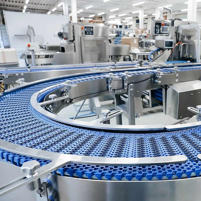 Food and beverage production environments are supported by systems designed for hygiene, reliability, and consistent operation, enabling packaging, material handling, inspection, and production workflows in regulated settings.